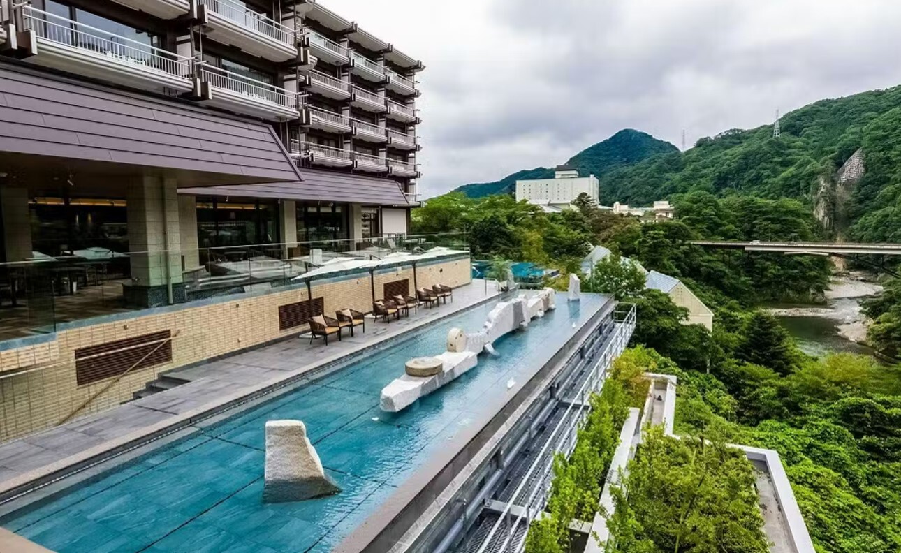 日光きぬ川スパホテル三日月は、東武鉄道鬼怒川温泉駅から徒歩約3分。鬼怒川の渓谷に立つリゾートホテルである。2009年「きぬ川ホテル三日月」として開業。2020年には大規模なリニューアルを行い、現在の「日光きぬ川スパホテル三日月」と名称も変えた。